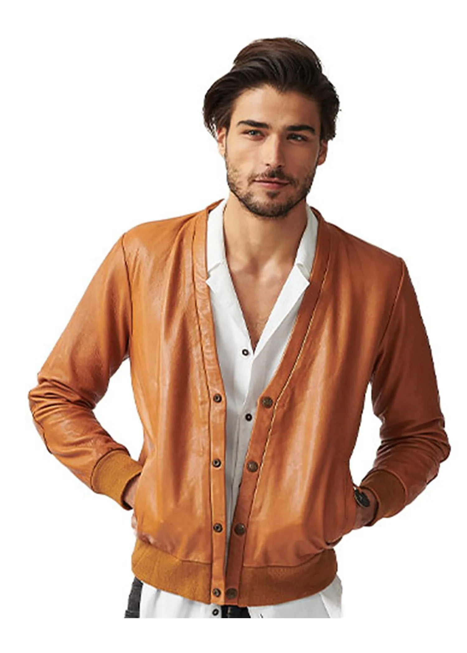 Our Leather Cardi is just that! Based on a cool casual cardigan design but modernized with press stud closure, ribbing detail on hem and cuff, open pockets and crafted from the softest lamb leather. Our Londoner Leather Cardi will have you standing out from the crowd.