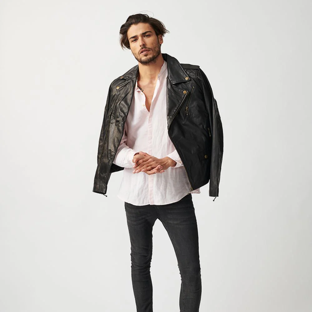 The Vikings - a seafaring people who established a name for themselves as traders, explorers and warriors. They were strong, tough and brave. Just like our biker jacket - strong, tough design but with added luxe! Crafted from the softest full grain cow leather this jacket is made for travel - light enough to wear all day but thick enough to keep you warm on a cold night. Fully lined, asymmetric zipper closure, quilting detail and zippered pockets. With particular attention to detail The Viking stands out among jackets.